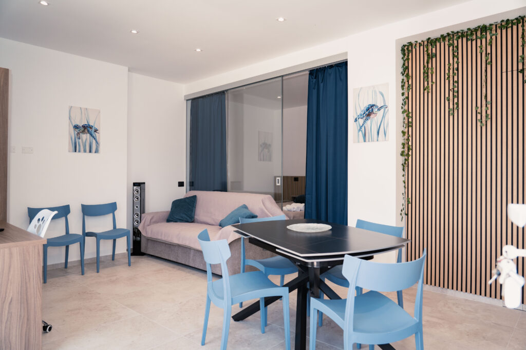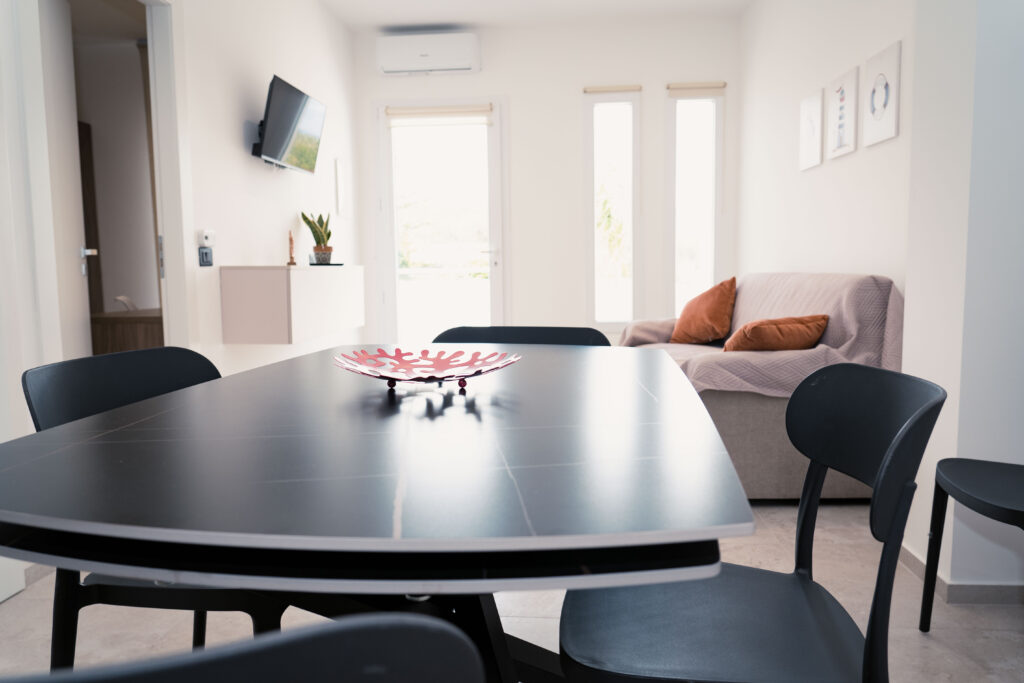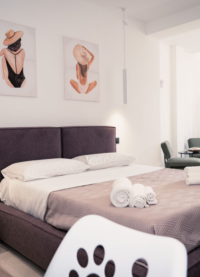 Cozy and refined, the Corallo Apartment takes inspiration from the seabed and the warm tones of coral, providing an intimate and relaxing atmosphere. A two-room apartment designed for couples, friends or small families who want to experience the sea in complete relaxation, without sacrificing comfort.
