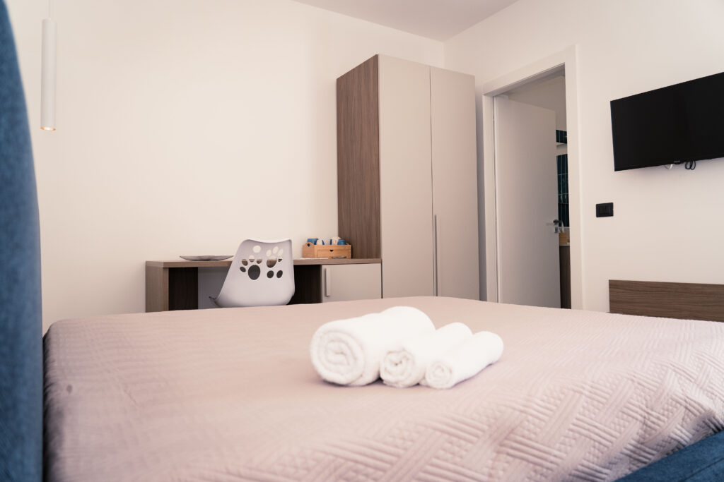 Decorated in shades that recall the deep blue of the sea and the white of the foam of the waves, this room offers an authentic relaxing experience, perfect for couples or solo travellers.